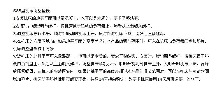 將墊鐵放置機床下,每個墊鐵均受力后.再調整水平。 注:可調整高度為3-15mm. |